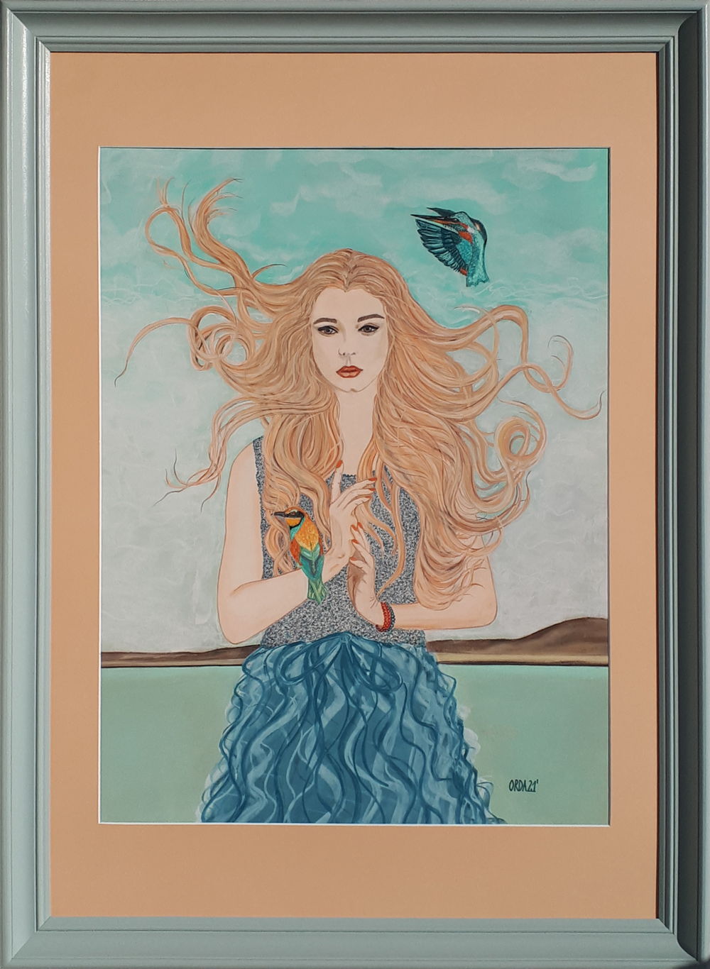 tytuł obrazu: Dziewczyna z żołną i zimorodkiem